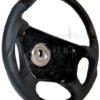 En meget sporty oppgradering til din Mercedes. Et flott ratt trukket i sort skinn med ekte carbon partier.
